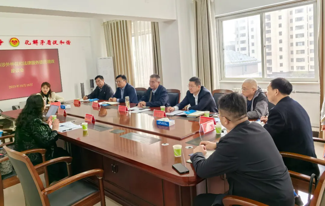 各方还围绕涉外案件风险防范、仲裁市场培育及仲裁与调解结合等内容展开交流。会前,高庆生副主任带领参观办公场所,并介绍了“宋都调解”“码上监督”等服务市场主体的创新举措。