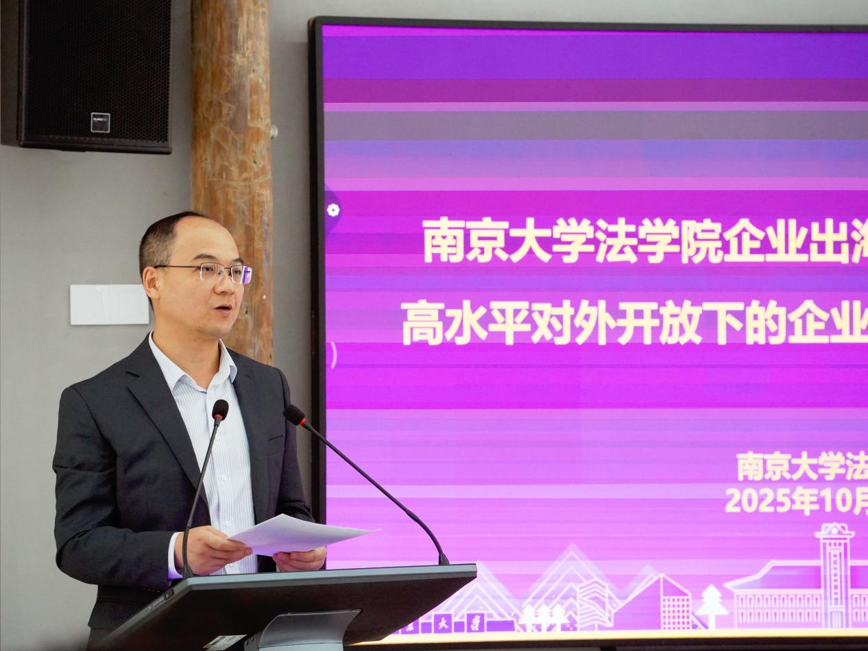 南京大学法学院党委书记蒋恩铭代表法学院发表致辞,他重点阐述了南京大学法学院在涉外法治研究领域的深厚积累,强调了企业“出海”背景下专业的法律智力支持与实务服务平台的重要性。对新成立的南京大学法学院企业出海研究中心(以下简称“企业出海研究中心”),他提出要将其打造为“学术+产业+服务”的协同平台、问题导向的研究平台、供需对接的服务平台和政企协同的沟通平台,助力企业高质量“走出去”。