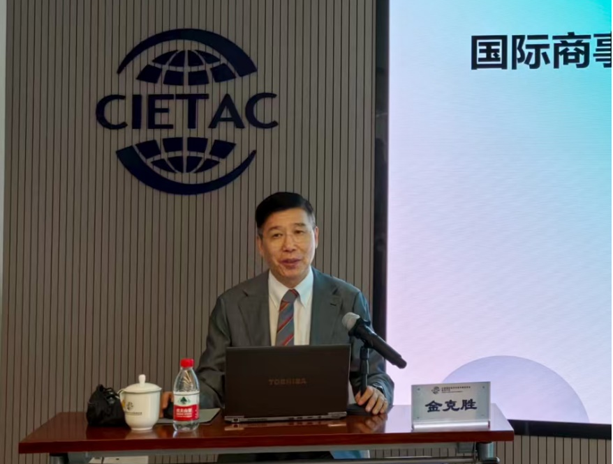 主题演讲环节,外交学院法学教授,中国法学会知识产权法学研究会副会长,最高人民法院知识产权司法保护中心研究员,国务院政府特殊津贴专家,最高人民法院民事审判第三庭(知识产权审判庭)原副庭长(正局级)、一级高级法官金克胜围绕“国际商事仲裁视角下的涉外知识产权纠纷解决”,从知识产权司法保护原理、知识产权仲裁特性、涉外知识产权新发展等方面作专题讲授。金教授特别指出,区别于诉讼,仲裁对于知识产权保护有独到优势,贸仲在长期实践中为涉外知识产权保护建立了行之有效的工作机制,形成了国际引领性的工作成果。