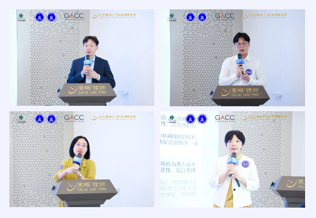 广州市律师协会跨境争议解决法律专业委员会主任张旭锋、GACC法律职业经理人联合会副会长兼秘书长张俊鑫、北京策略(广州)律师事务所高级合伙人、管委会主任、党支部书记陈震出席本次交流会并致辞。张旭锋主任指出,在当前复杂多变的国际投资环境中,仲裁以其专业灵活、高效保密和跨境执行等优势,应充分发挥作用,为企业出海保驾护航。