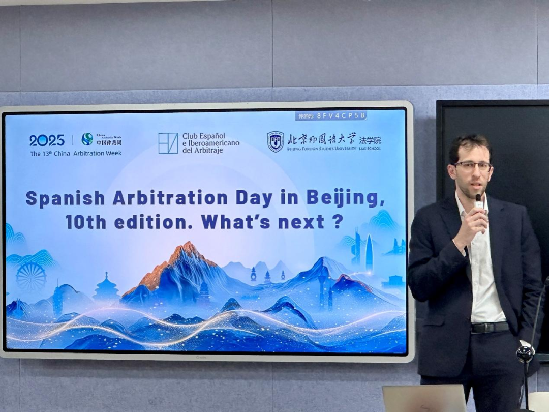 2025年9月16日,由北京外国语大学法学院和西班牙-伊比利亚美洲仲裁俱乐部联合主办、中国国际经济贸易仲裁委员会(“贸仲”)支持的“第十届西班牙仲裁日 下一步是什么?(Spanish Arbitration Day in Beijing, 10th edition What’s Next?)”在北京外国语大学国际大厦517会议室成功举行。来自中国、西班牙、阿根廷等国的仲裁专家、学者、律师及学生共聚一堂,展开了充实而深入的学术交流。