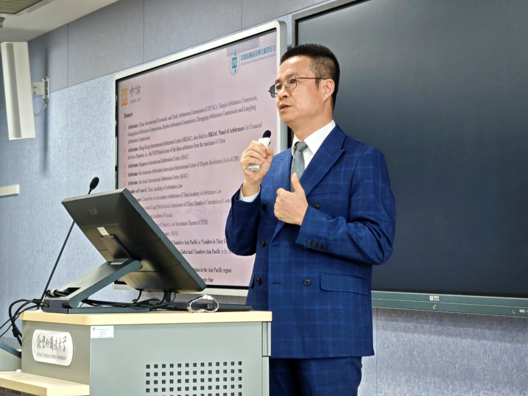 北京外国语大学法学院副院长、贸仲仲裁员董念清教授在欢迎辞中指出,国际仲裁在全球化背景下正不断演变,作为培养具备跨文化理解力和专业素养的国际法律人才的高地,北京外国语大学法学院致力于搭建中外法律交流的桥梁,并寄语学生应积极主动了解实务界的最新发展和机遇。