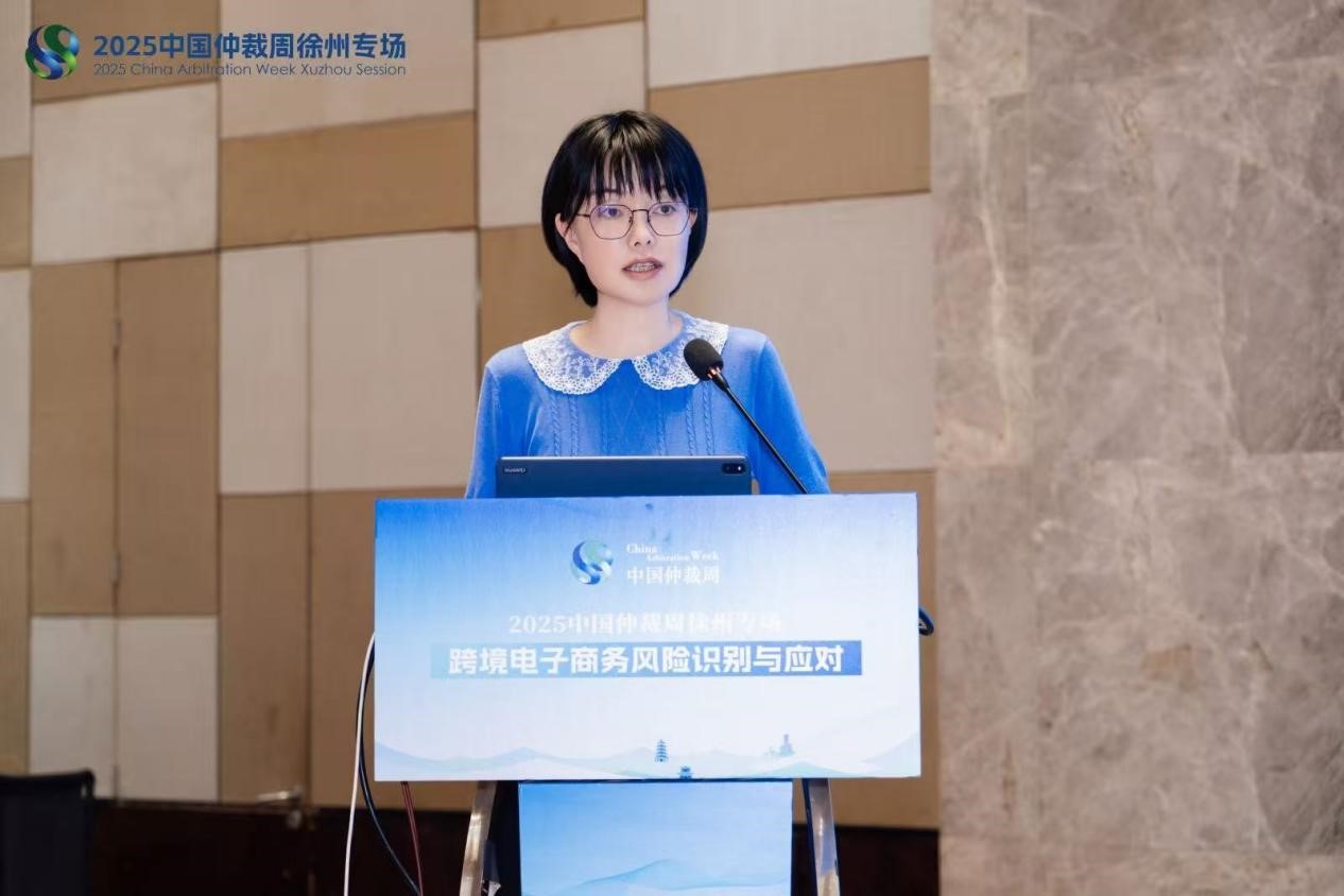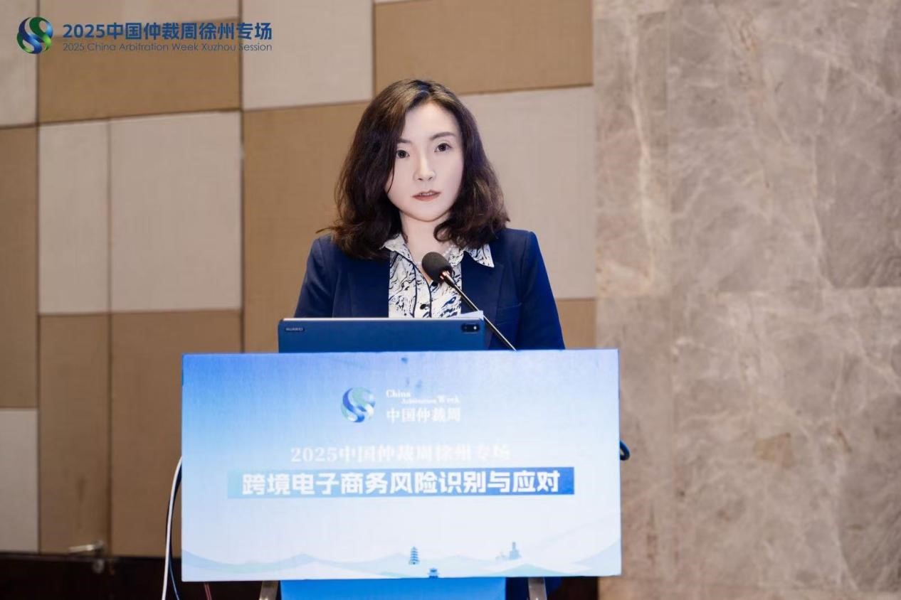 贸仲事业发展处处长陆菲在致辞中介绍了贸仲在仲裁规则革新与数字信息化建设方面取得的重要成果,以及贸仲江苏中心异地庭审中心建设、案件办理特别是涉外仲裁案件办理的情况。她指出,仲裁作为国际通行的商事争议解决方式,具有尊重意思自治、专家断案、保密高效、裁决便于境外执行等独特优势,与跨境电商行业的争议解决需求高度契合。本次中国仲裁周首度落地徐州,正是着眼于当地跨境电商产业的蓬勃兴起及其对专业化、国际化争议解决机制的迫切需求。她表示,贸仲愿与徐州各界深化合作,充分发挥仲裁优势,为跨境电商企业防范风险、化解争议提供力量支撑。