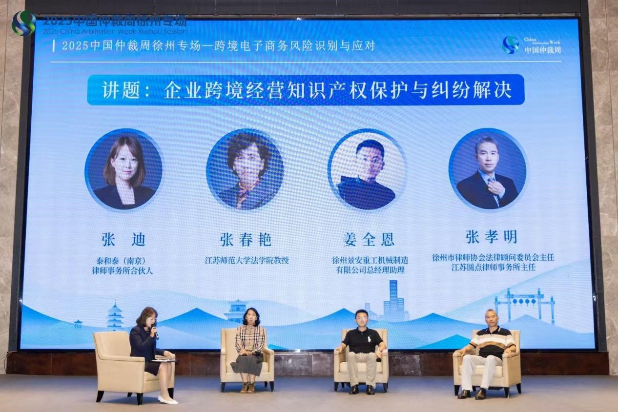 9月25日,2025中国仲裁周徐州专场“跨境电子商务风险识别与应对”活动在徐州成功举办。本次活动由江苏省贸促会指导,中国国际经济贸易仲裁委员会江苏中心(以下简称“贸仲江苏中心”)联合徐州市贸促会、徐州市知识产权保护中心和徐州市律师协会共同主办,并得到淮北市贸促会、江苏省国际商事法律服务中心、江苏师范大学法学院、徐州市电子商务协会及江苏苏淮律师事务所的大力支持。