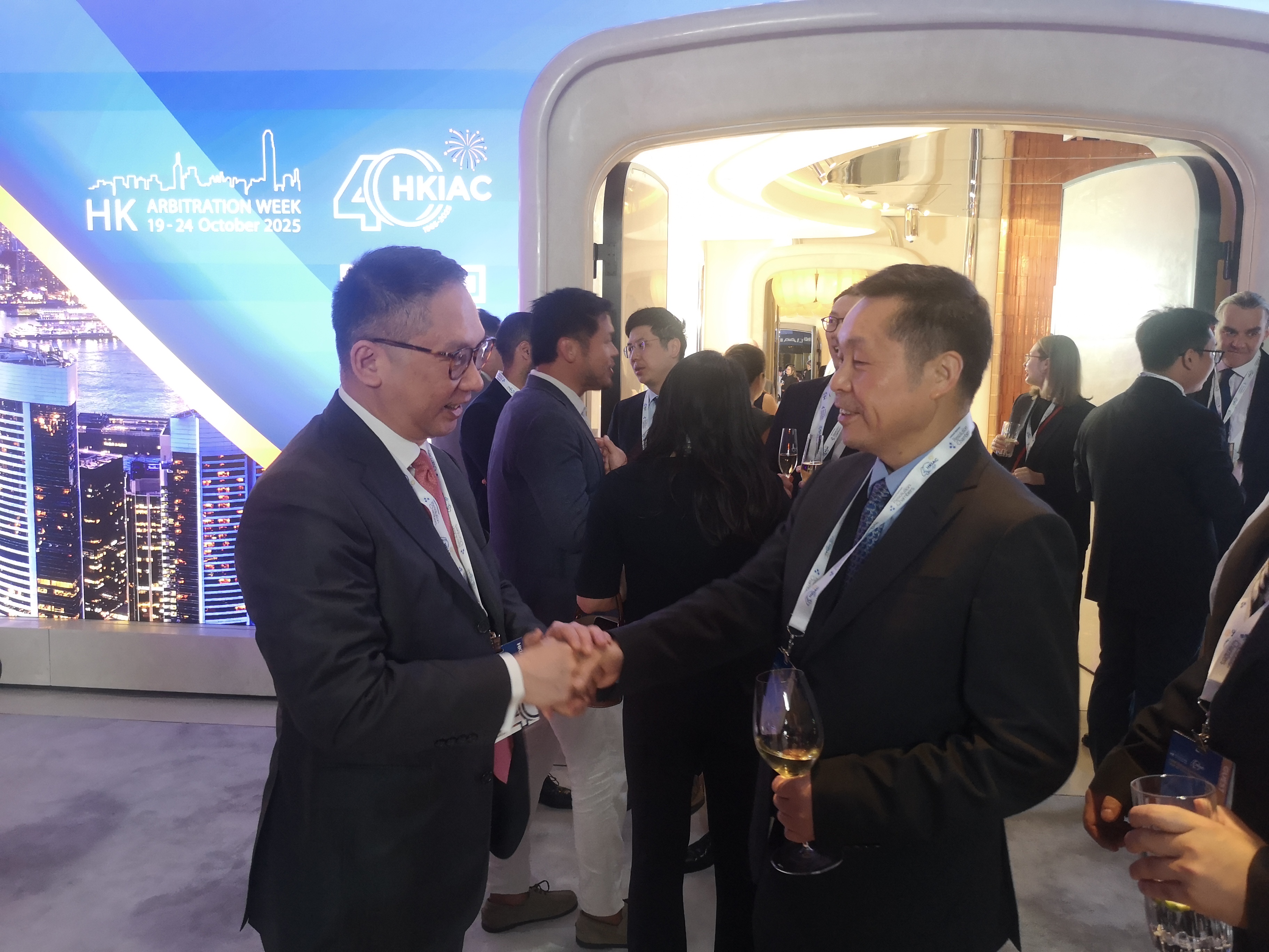 2025年10月19日晚,2025香港仲裁周欢迎酒会暨香港国际仲裁中心(以下简称“港仲”)成立四十周年庆典活动在香港举办。中国国际经济贸易仲裁委员会(以下简称“贸仲”)副主任兼秘书长王承杰应邀率代表团出席活动。数百名主要国际仲裁机构代表、法律界及工商界人士参加庆典活动。