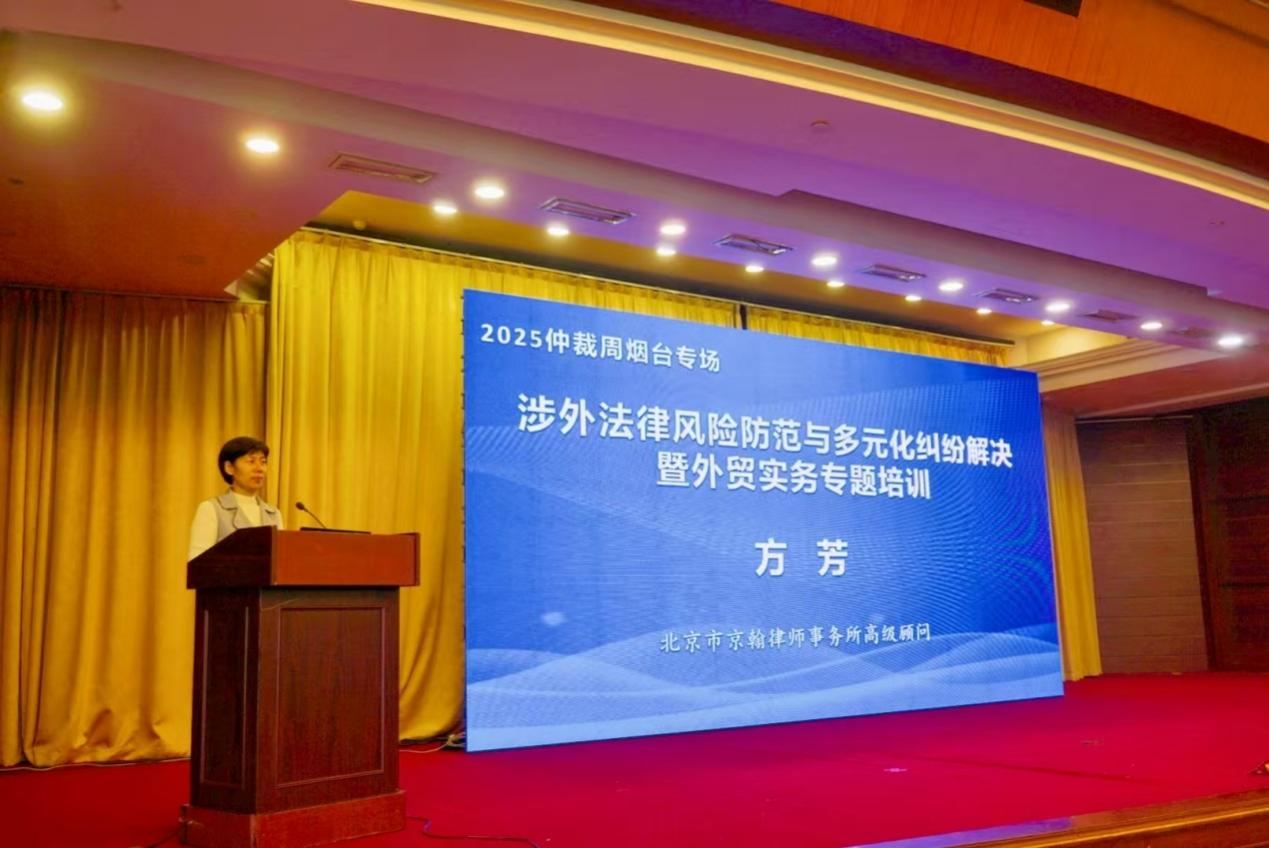 中国国际经济贸易仲裁委员会(以下简称“贸仲”)仲裁院副院长兼山东分会秘书长解常晴,山东省贸促会一级巡视员、山东国际商会副会长林源出席活动并致辞,烟台市贸促会党组书记、会长田长青主持开幕式。贸仲仲裁员、北京市中伦律师事务所合伙人戴雯,贸仲仲裁员、北京市京翰律师事务所高级顾问方芳进行主题演讲。