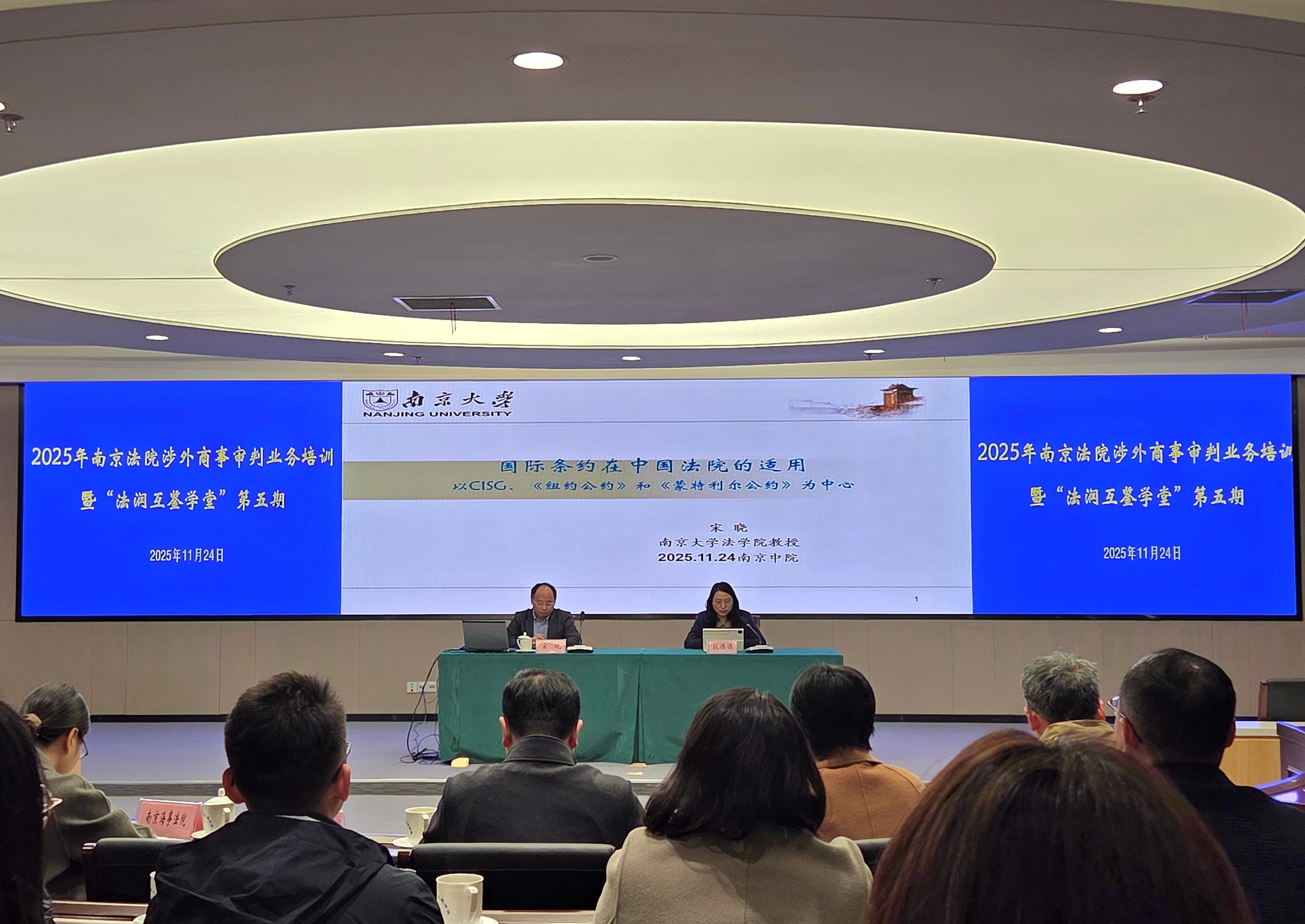 2025年11月24日,2025年南京法院涉外商事审判业务培训暨“法润互鉴学堂”第五期活动在南京市中级人民法院举办,活动由南京国际商事法庭庭长殷源源主持。中国国际经济贸易仲裁委员会江苏仲裁中心(以下简称“贸仲江苏中心”)应邀派员参加。