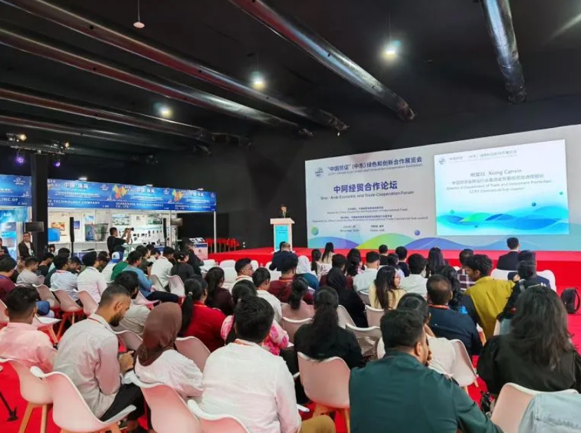 11月26日,“中国贸促”(中东)绿色和创新合作展览会在阿联酋迪拜节日城展览中心成功开幕。本次展会由中国贸促会主办,展期三天,展览面积约1000平方米,共有38家中国企业参展,展品涉及人工智能、机械设备、新能源汽车与配件、医疗用品、家电及电子产品、高端消费品、创意产品等领域。展会得到中阿各界高度重视,来自中国驻迪拜总领馆、阿联酋外贸部、中国贸促会驻海湾地区代表处、中国机电商会、中国贸促会商业行业委员会等有关嘉宾出席同期活动。