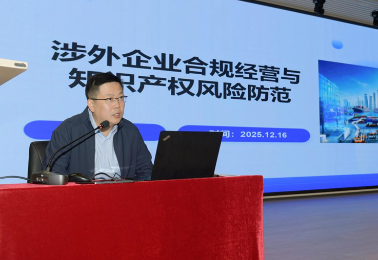 司法部千名涉外律师人才库入库律师、最高人民检察院民事行政检察专家咨询网专家、上海市锦天城(西安)律师事务所合伙人徐健围绕“涉外企业合规经营与知识产权风险防范”展开专题培训。他详细梳理了数据隐私保护、ESG管理、反商业贿赂、劳动用工等重点领域合规风险与处置路径,并结合案例阐述了企业的知识产权布局管理与维权策略,为企业建立全链条风控体系提供专业指导。