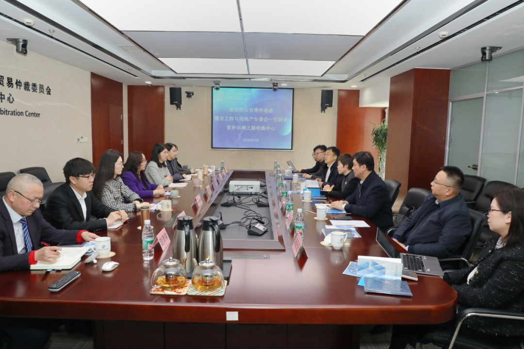 2026年3月2日,西安市律师协会建设工程与房地产专业委员会(以下简称“西安市律协建房委”)主任董春红一行到访中国国际经济贸易仲裁委员会丝绸之路仲裁中心(简称“贸仲丝路中心”)。贸仲丝路中心副秘书长蒋红梅接待并座谈。