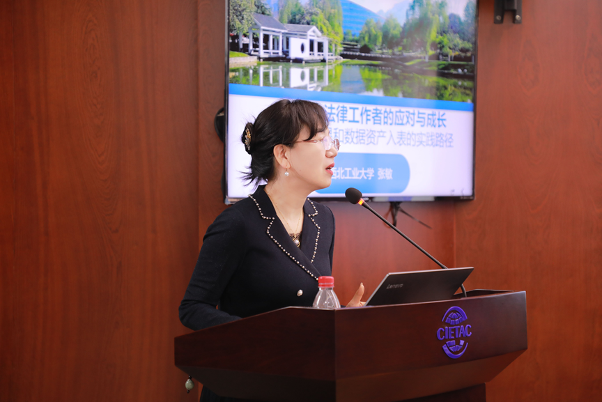 在主题分享环节,西北工业大学张敏教授围绕“AI时代女法律工作者的应对与成长——数据交易和数据资产入表的实践路径”进行了分享。她系统梳理了我国数据立法的演进历程,剖析了数据安全与个人信息保护的核心制度,并结合数据交易合同示范文本与资产入表实践案例,介绍了数据确权、合规评估及会计处理的关键路径。她指出,数据法治为法律工作者开辟了新赛道,女性法律人细致严谨的特质能够在数据合规、资产化等领域发挥独特优势,她鼓励大家以不设限的勇气拥抱技术变革,在数字时代实现职业发展新突破。