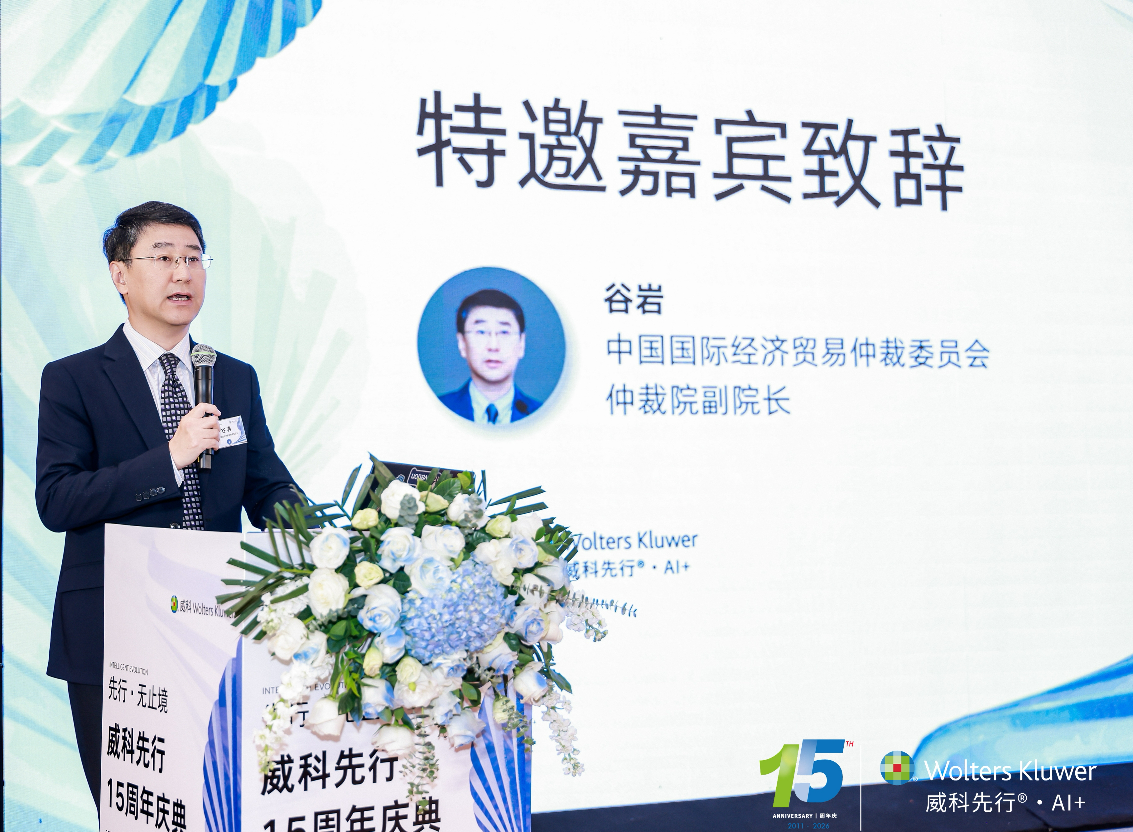 2026年4月18日,威科先行十五周年庆典暨颁奖典礼在北京举行。中国国际经济贸易仲裁委员会(“贸仲”)仲裁院副院长谷岩应邀出席,并作为特邀嘉宾发表致辞。