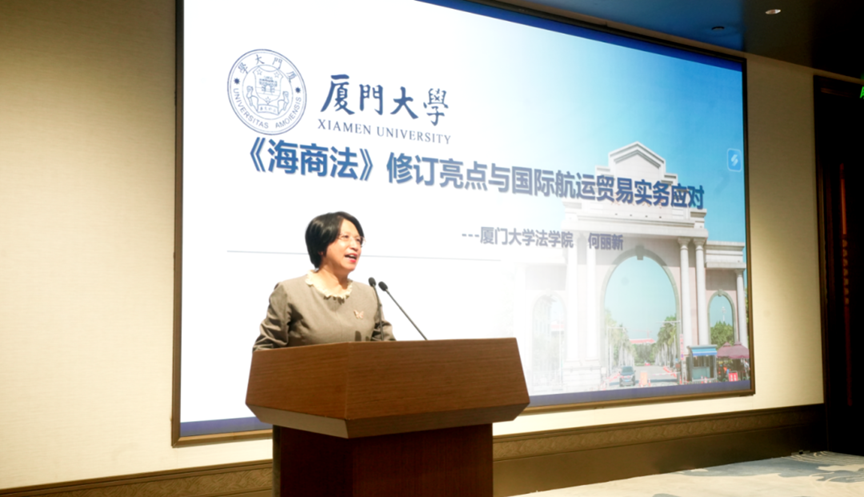 4月17日上午,中国国际经济贸易仲裁委员会福建分会(海丝仲裁中心)协办的海丝中央法务区讲堂在厦门成功举办,活动邀请厦门大学法学院教授、博士生导师、交通运输部《海商法》修改研究课题组“海事赔偿责任限制”小组组长、中国海商法协会常务理事何丽新教授,围绕《海商法》修订的焦点问题分享交流,为法律实务界及航运企业提供前沿理论支撑与操作指引。“《海商法》修订历时八年,2025年10月28日,十四届全国人大常委会第十八次会议表决通过,对国际贸易和海上运输的影响非常重大。”何丽新教授介绍说,新海商法主要修改内容包括适度统一国内和国际两个市场的海商规则;适当调整海商活动当事人的权利和义务;为航运数字化发展提供制度保障;健全海洋生态环境保护相关制度;完善海商领域的涉外关系法律适用规则等。