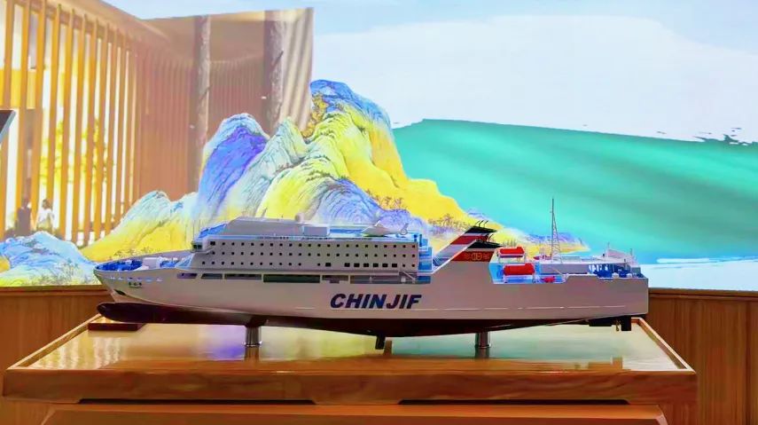 另一艘是中日航线豪华滚装客货班轮“鉴真号”船模,自1985年开辟上海至日本第一条国际客货班轮航线以来,三代“鉴真号”累计运送出入境旅客30多万人次,不仅延续了鉴真大师中日友好的千年夙愿,更成为了两国民间交流的重要桥梁和纽带。