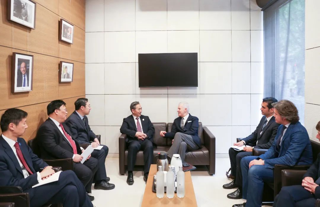 6月20日,中国贸促会会长任鸿斌在法国巴黎会见国际商会秘书长丹顿,就加强双方在维护全球产业链供应链稳定畅通、应对气候变化和实现数字化转型等领域的务实合作、推动工商界通过多边机制参与全球经济治理及第二届链博会等议题开展了深入交流。