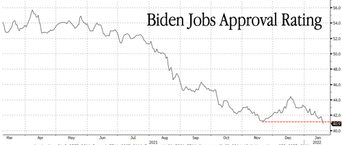 盖洛普最新的民调显示,就在拜登上任满一年之际,其支持率已经从一年前刚就职时的57%降至了40.9%。自从二战以来,只有特朗普的同期支持率(38.4%)比拜登更低。在民调中,对高通胀和疫情控制不力的抱怨成为了影响拜登支持率的关键因素。