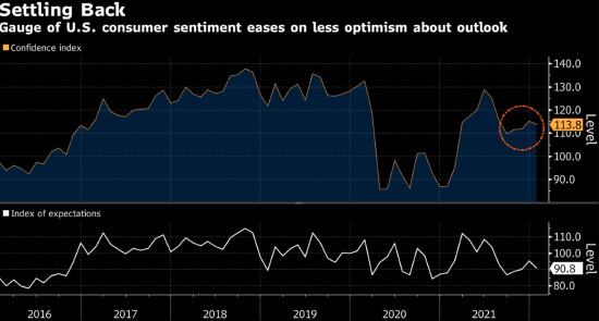 “对于短期经济前景的预期趋弱,显示2022年第一季度经济增速可能趋缓,”世界大型企业研究会的经济指标高级主任Lynn Franco在一份声明中表示。“展望未来,信心和消费者开支可能会继续受到物价上升和疫情持续的挑战。”